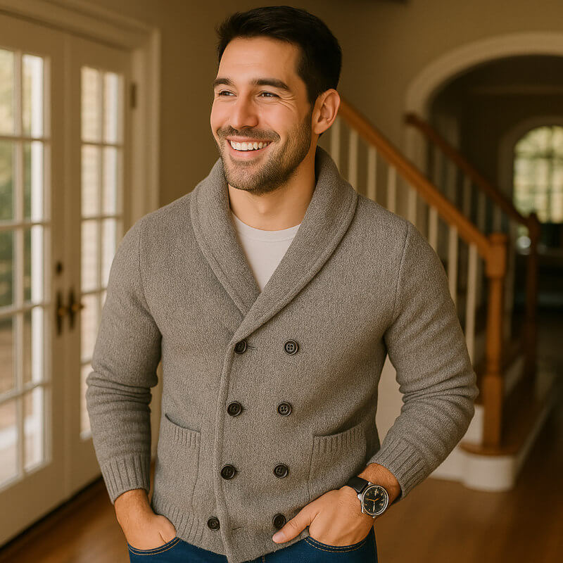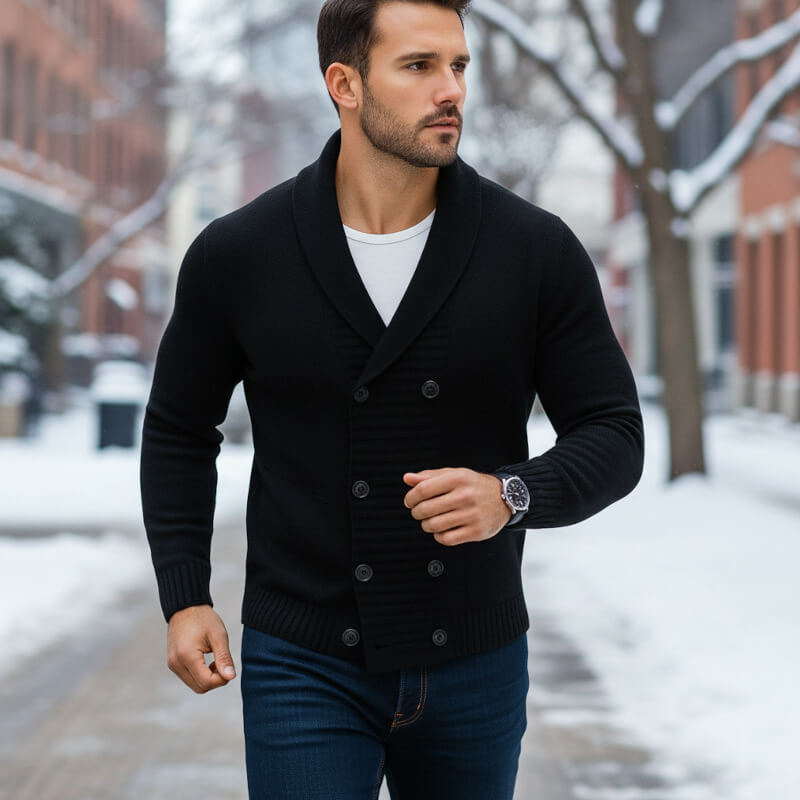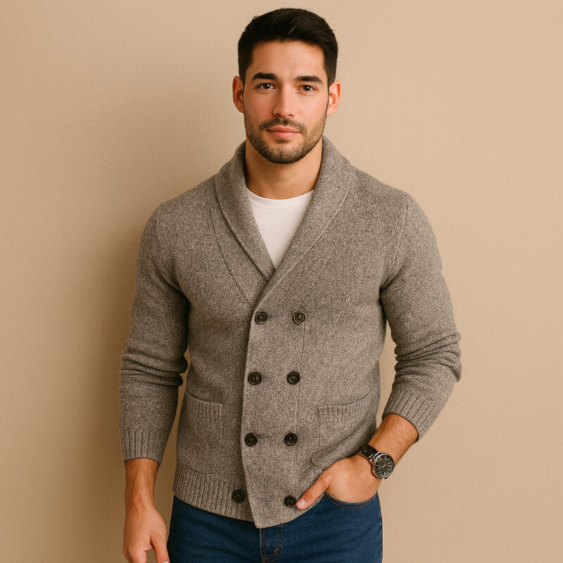 The Taylor - Double Breasted Cardigan keeps you warm and comfortable without feeling bulky. Made from a soft, lightweight knit, it’s easy to layer and gentle on the skin. The double-breasted front and shawl collar add a touch of structure, making it a smart choice for work or relaxed weekends.