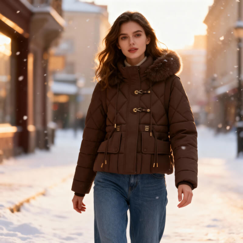 - Faux fur–lined hood for added softness